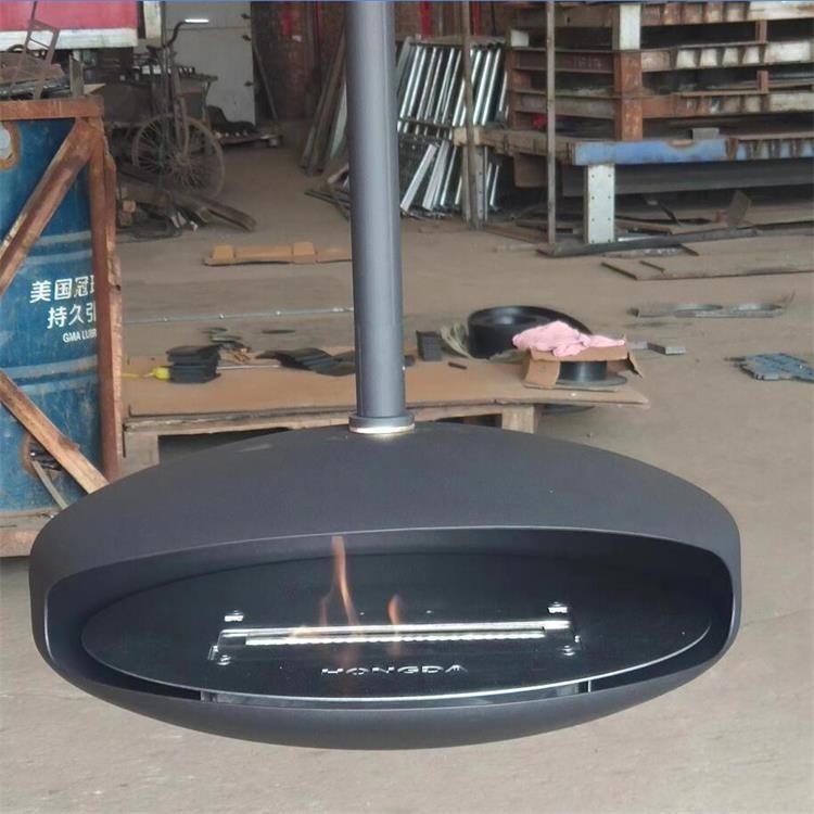 xArtikel | Modernes schwarzes Dach brachte den Kokon an, der verschobenen Äthanol-Kamin hängt | Material | Kohlenstoffstahl |